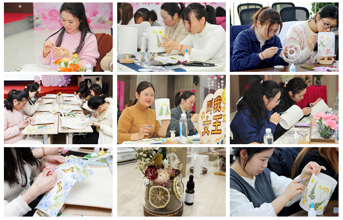 巧手匠心,創(chuàng)意無限。女職工們在專業(yè)老師的指導下,親手制作了精美的古法壓花臺燈、蝶古巴特手工包和植物香薰。大家充分發(fā)揮創(chuàng)意,制作出獨一無二的作品。手工制作不僅讓大家體驗到了動手的樂趣,也增進了同事之間的交流與互動?;顒咏Y(jié)束后,大家拿著自己親手制作的作品,臉上洋溢著滿足的笑容。