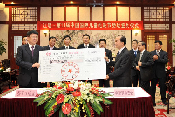 江蘇揚(yáng)子江船業(yè)集團(tuán)公司為第11屆中國(guó)國(guó)際兒童電影節(jié)贊助500萬元